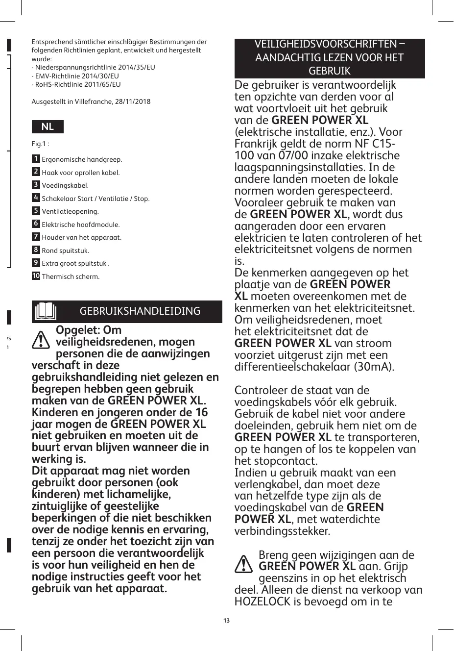 GEBRUIKSAANWIJZING GREEN POWER XL - 4192 HOZELOCK