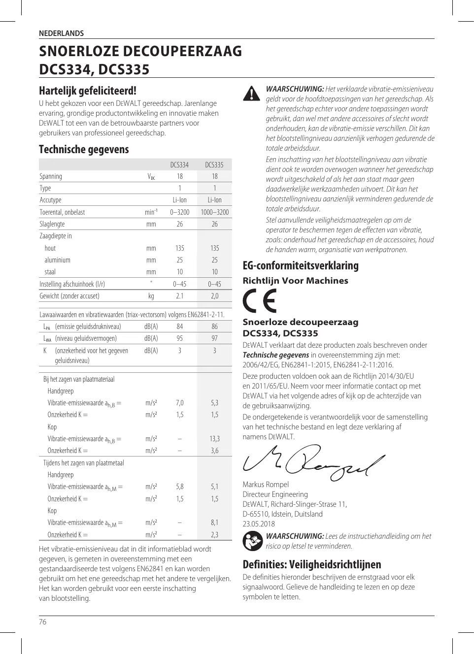 Le soussigné est responsable de la compilation du fichier technique et fait cette déclaration au nom de DEWALT.