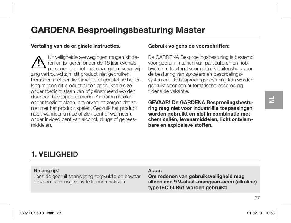 GEBRUIKSAANWIJZING Master - 1892 GARDENA