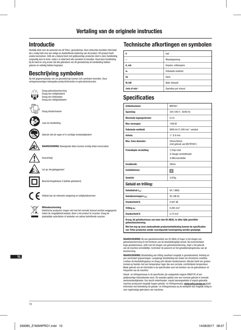 GEBRUIKSAANWIJZING MOF 001 - 1400 W TRITON