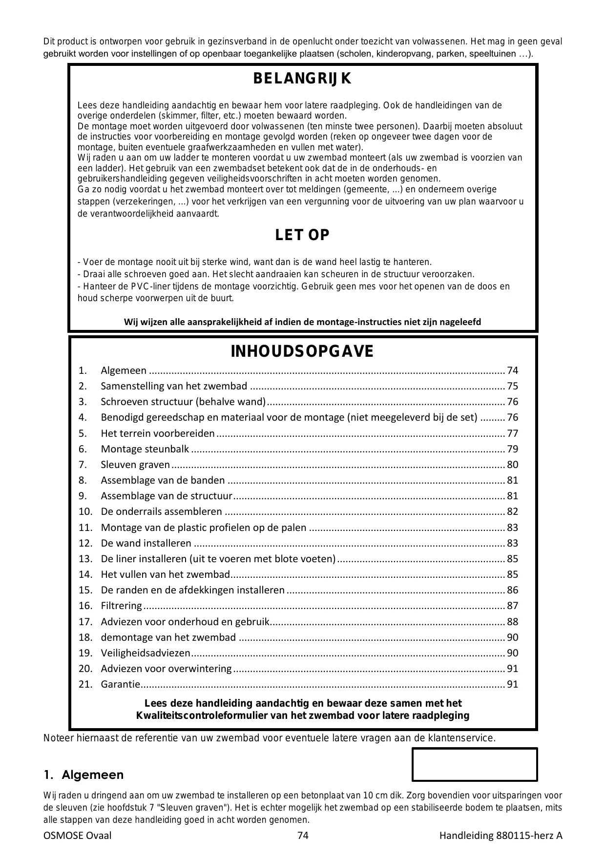 Download de handleiding voor uw Zwembad in PDF-formaat gratis! Vind uw handleiding OSMOSE N°880115 - TRIGANO en neem uw elektronisch apparaat weer in handen. Op deze pagina staan alle documenten die nodig zijn voor het gebruik van uw apparaat. OSMOSE N°880115 van het merk TRIGANO.