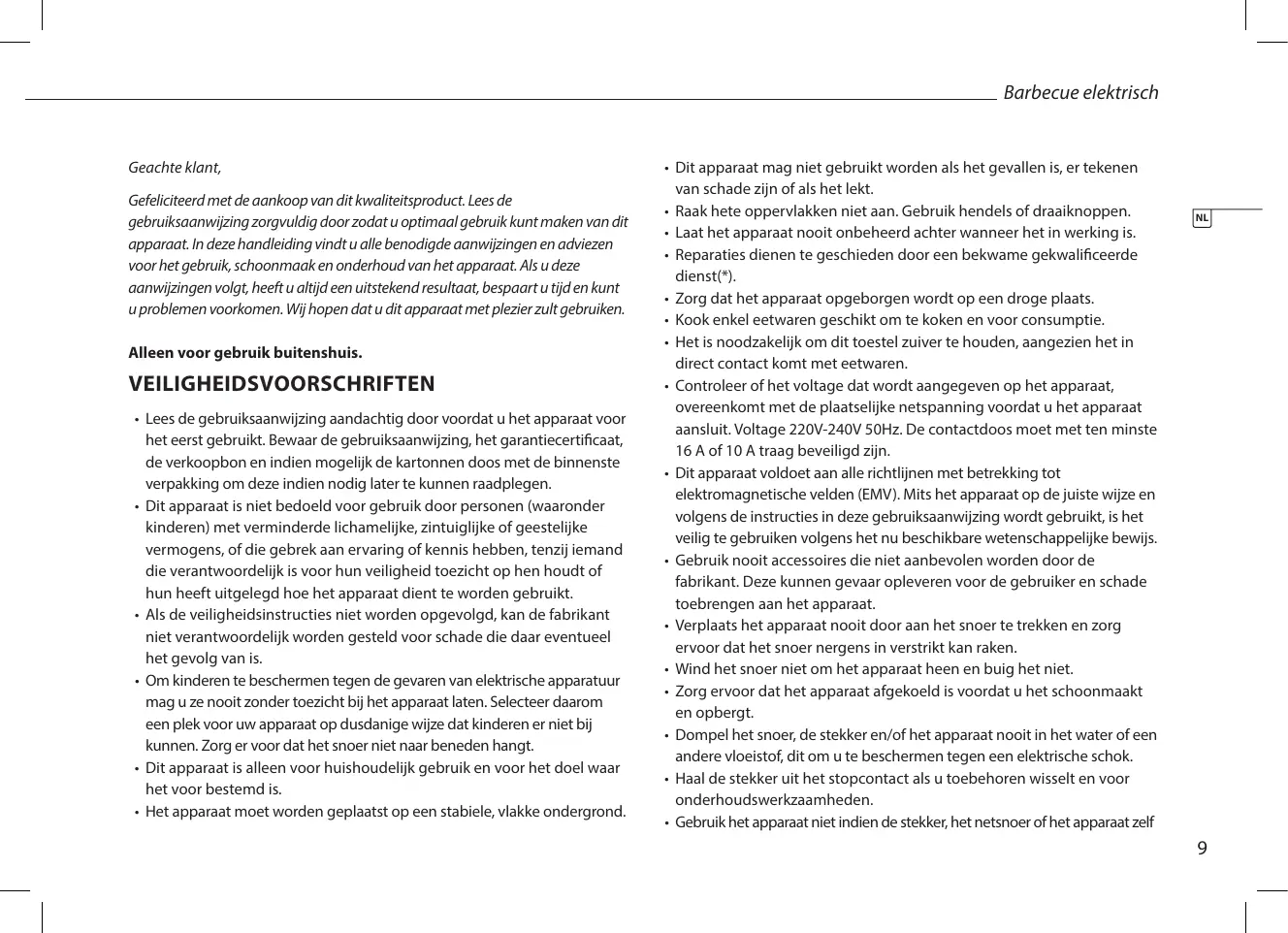 + NB : Afin d'éviter tout danger en cas de la réinitialisation accidentelle de la protection thermique, cet appareil ne peut pas être alimenté par un dispositif externe de commande, tel une minuterie, ou branché sur un circuit qui sera régulièrement allumé ou éteint.