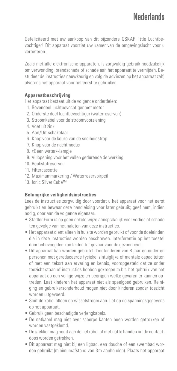 OSKAR LITTLE TITANIUM - Luchtbevochtiger STADLERFORM - Gratis gebruiksaanwijzing en handleiding