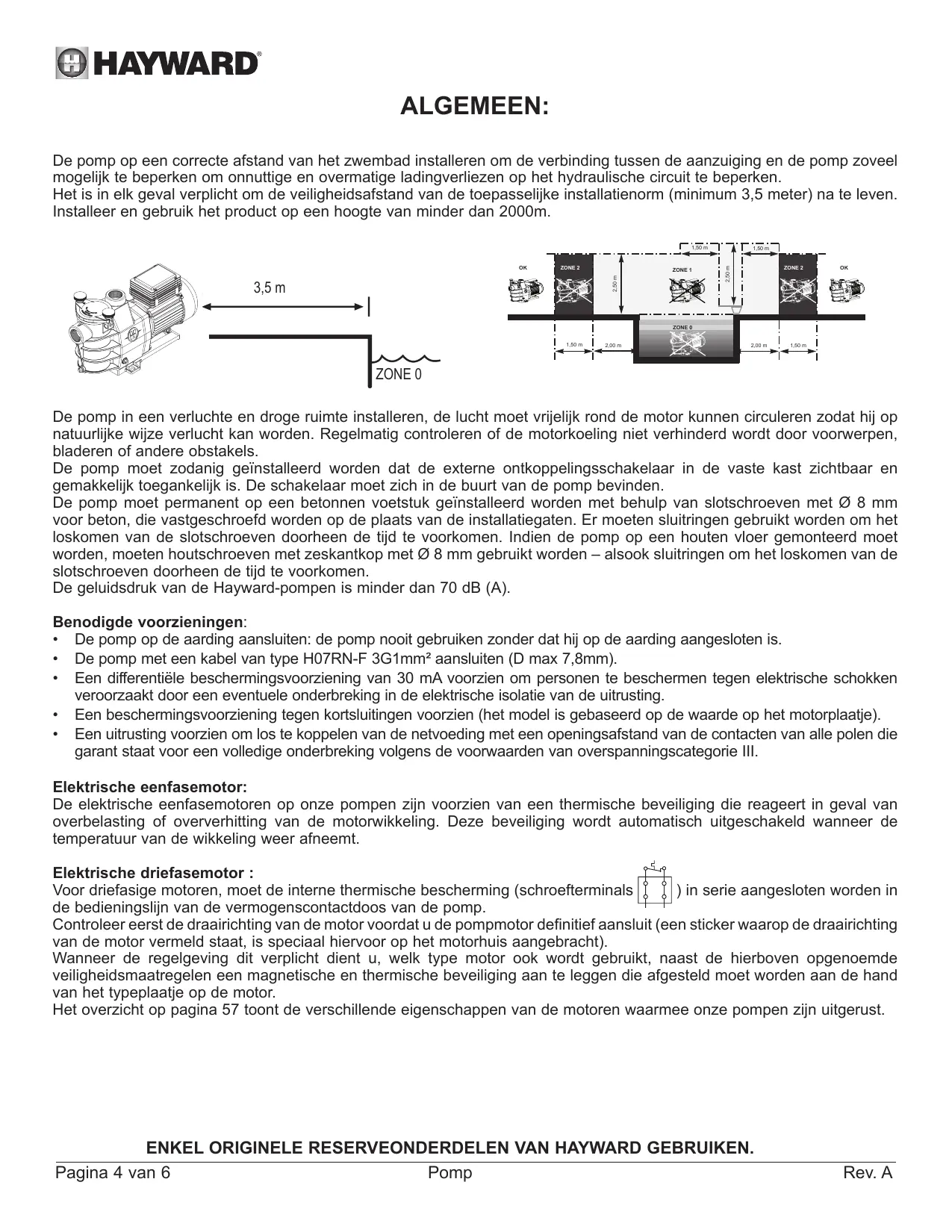 À WAARSCHUWING - De pomp is bedoeld voor continu gebruik bij maximale watertemperatuur 35°C. À WAARSCHUWING - Gebruik uitsluitend originele Hayward wisselstukken.