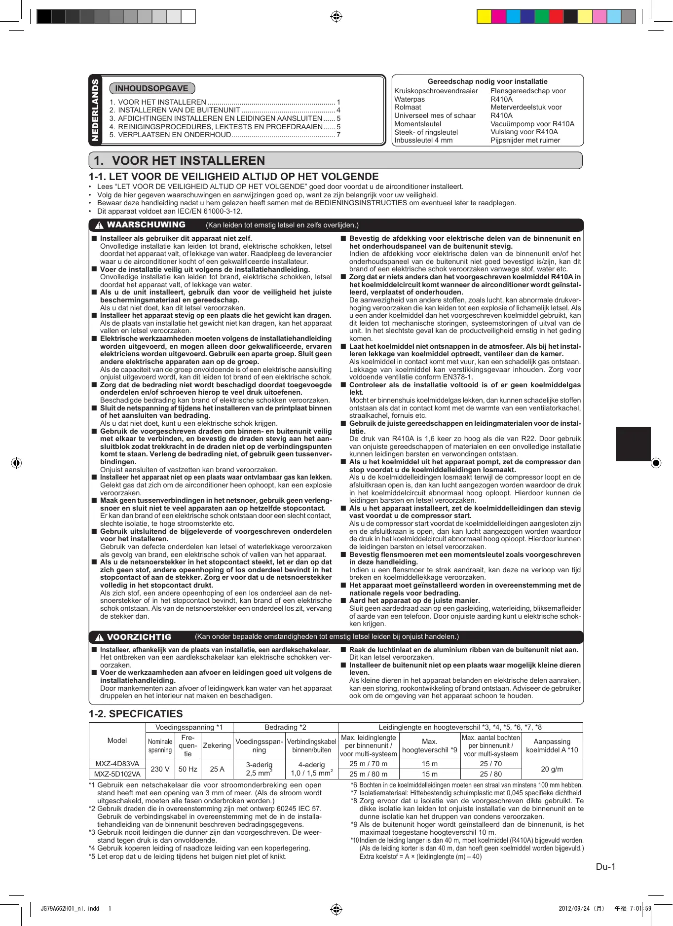GEBRUIKSAANWIJZING MXZ-4D83VA MXZ-5D102VA MITSUBISHI ELECTRIC