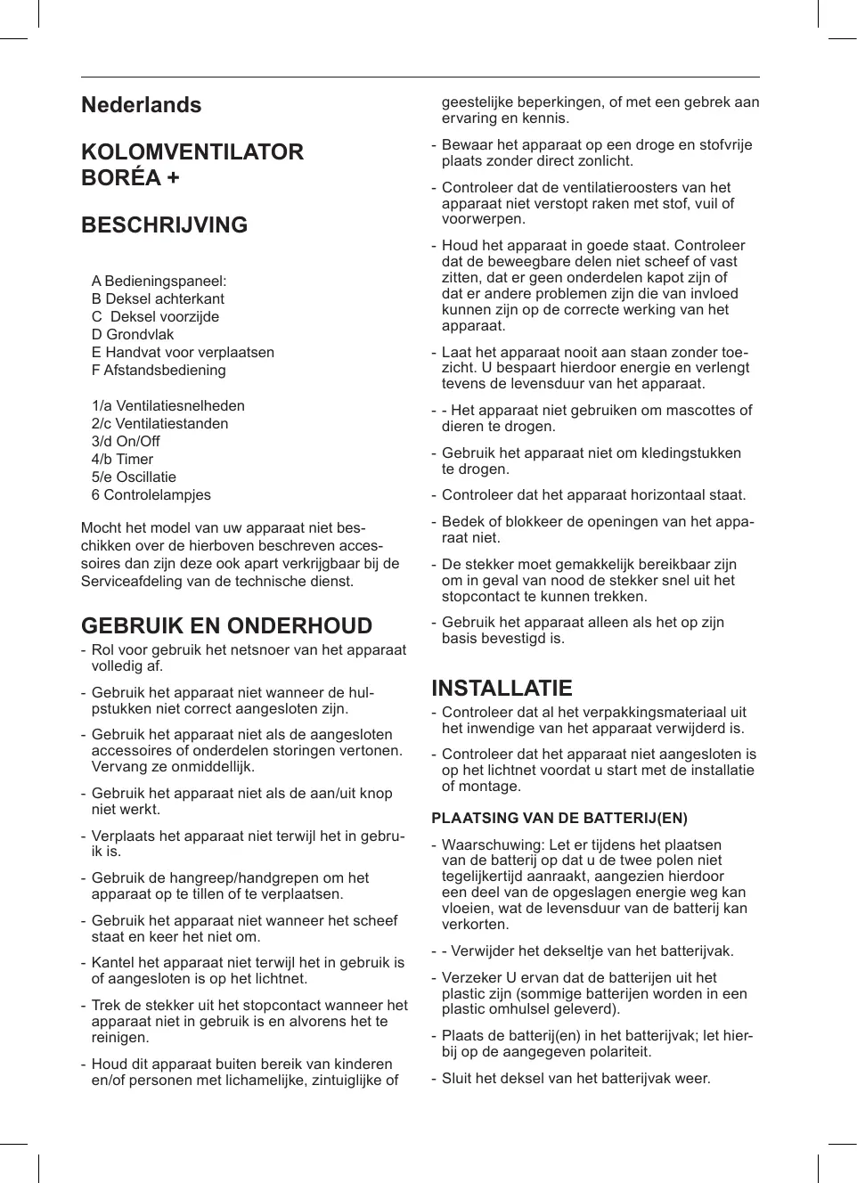 BOREA + - Colonne SUPRA - Gratis gebruiksaanwijzing en handleiding