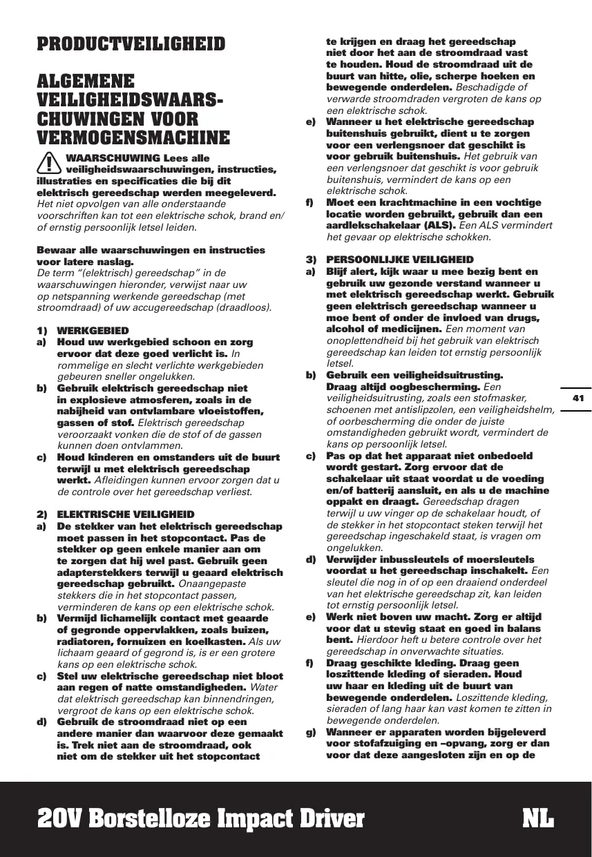 AVERTISSEMENT DE SÉCURITÉ CONCERNANT LA VISSEUSE À PERCUSSION
