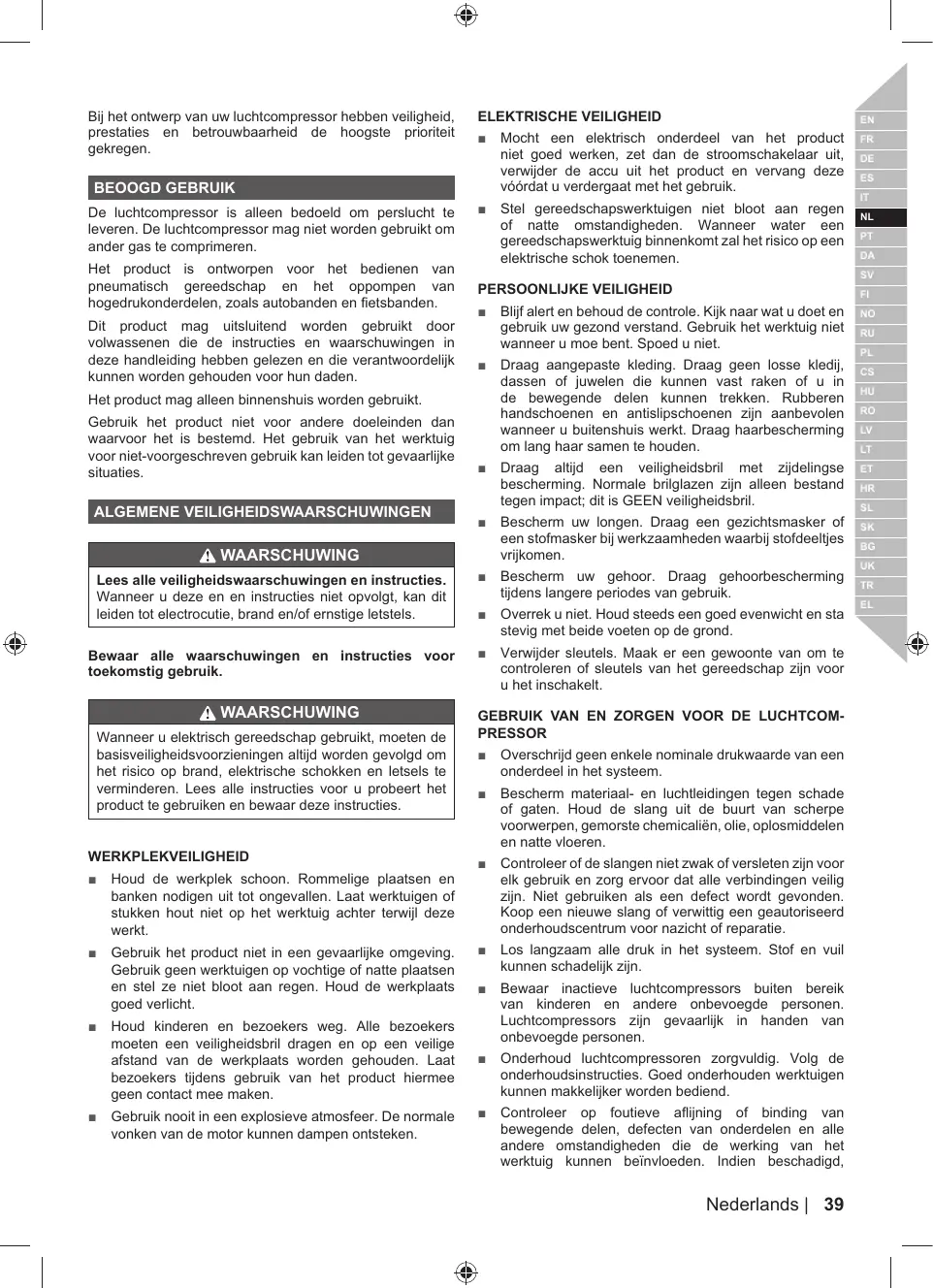 AVERTISSEMENTS DE SÉCURITÉ CONCERNANT LE COMPRESSEUR PNEUMATIQUE