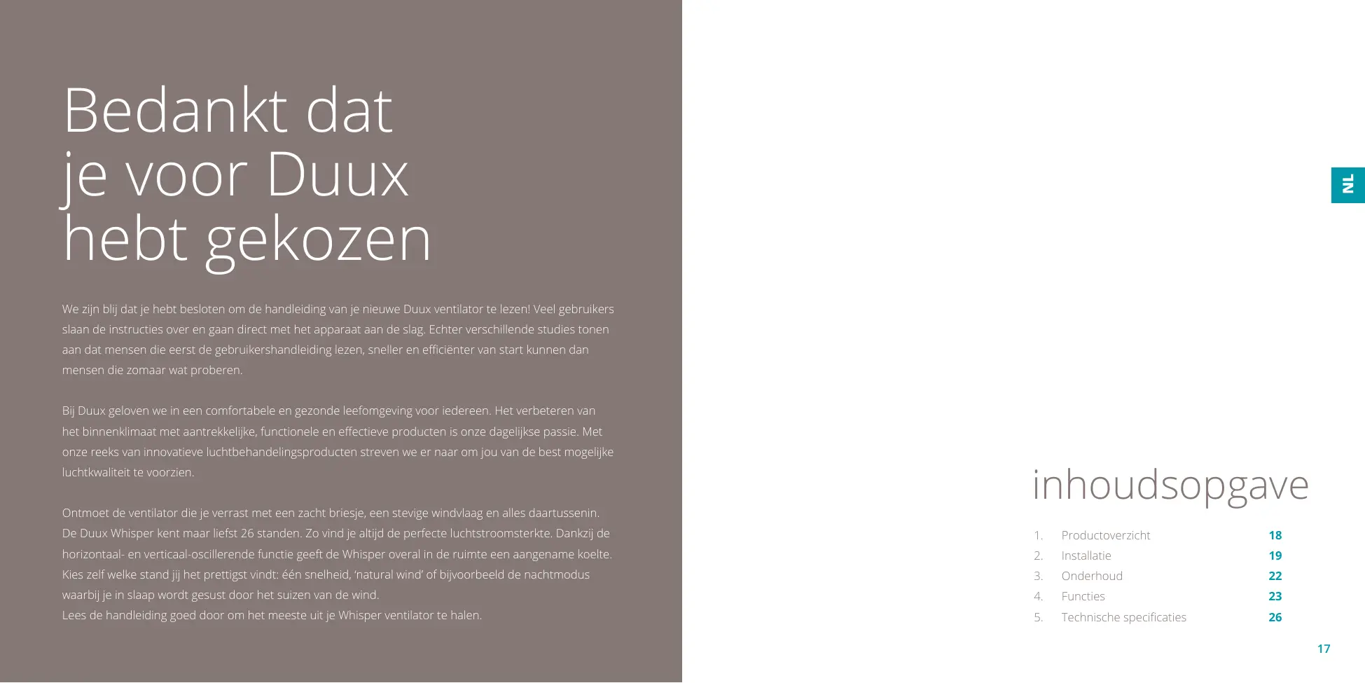 Vind de handleiding van het apparaat gratis WHISPER DXCF03 DUUX in PDF-formaat.