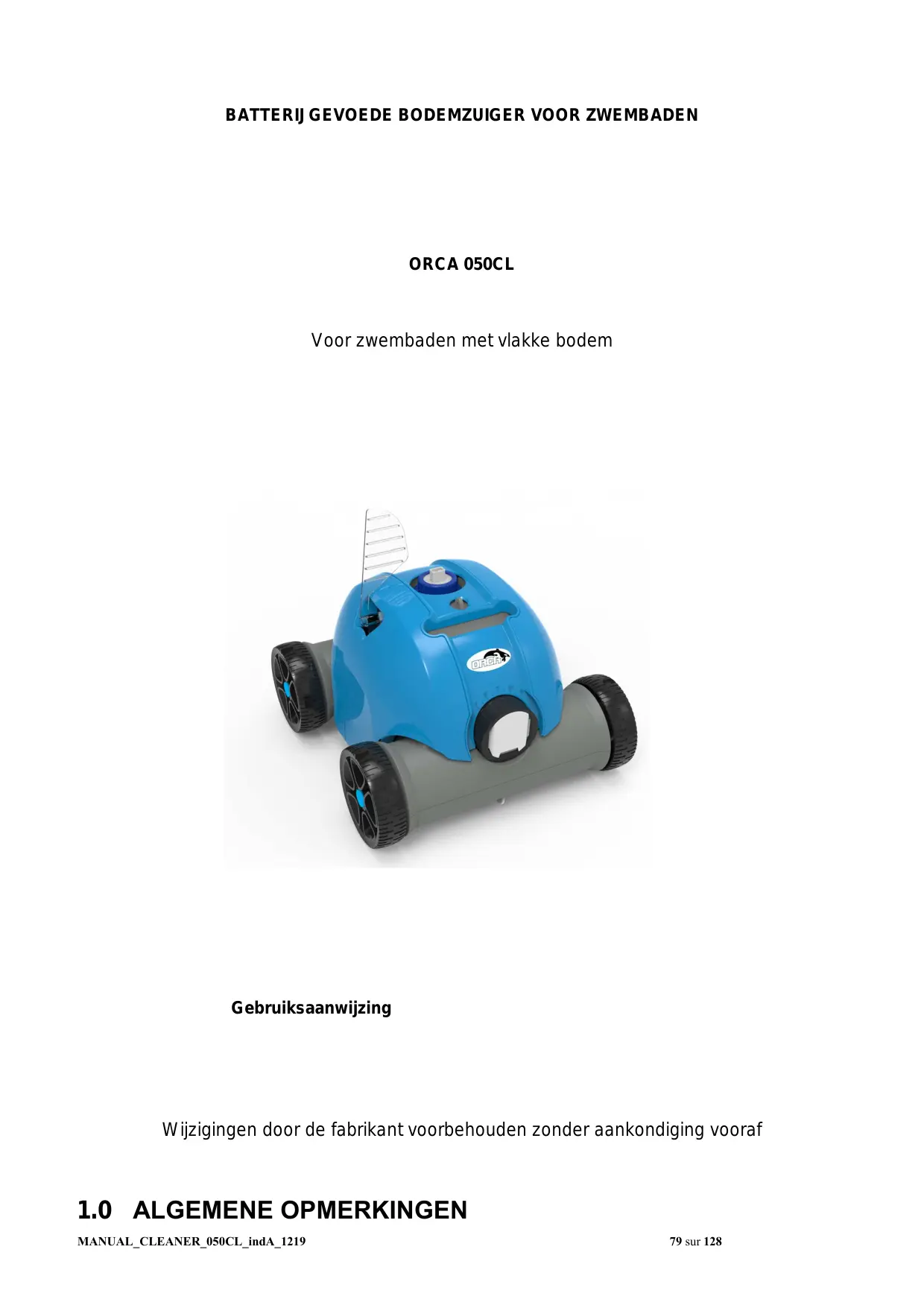 Download de handleiding voor uw Robot de piscine in PDF-formaat gratis! Vind uw handleiding 50 CL - ORCA en neem uw elektronisch apparaat weer in handen. Op deze pagina staan alle documenten die nodig zijn voor het gebruik van uw apparaat. 50 CL van het merk ORCA.