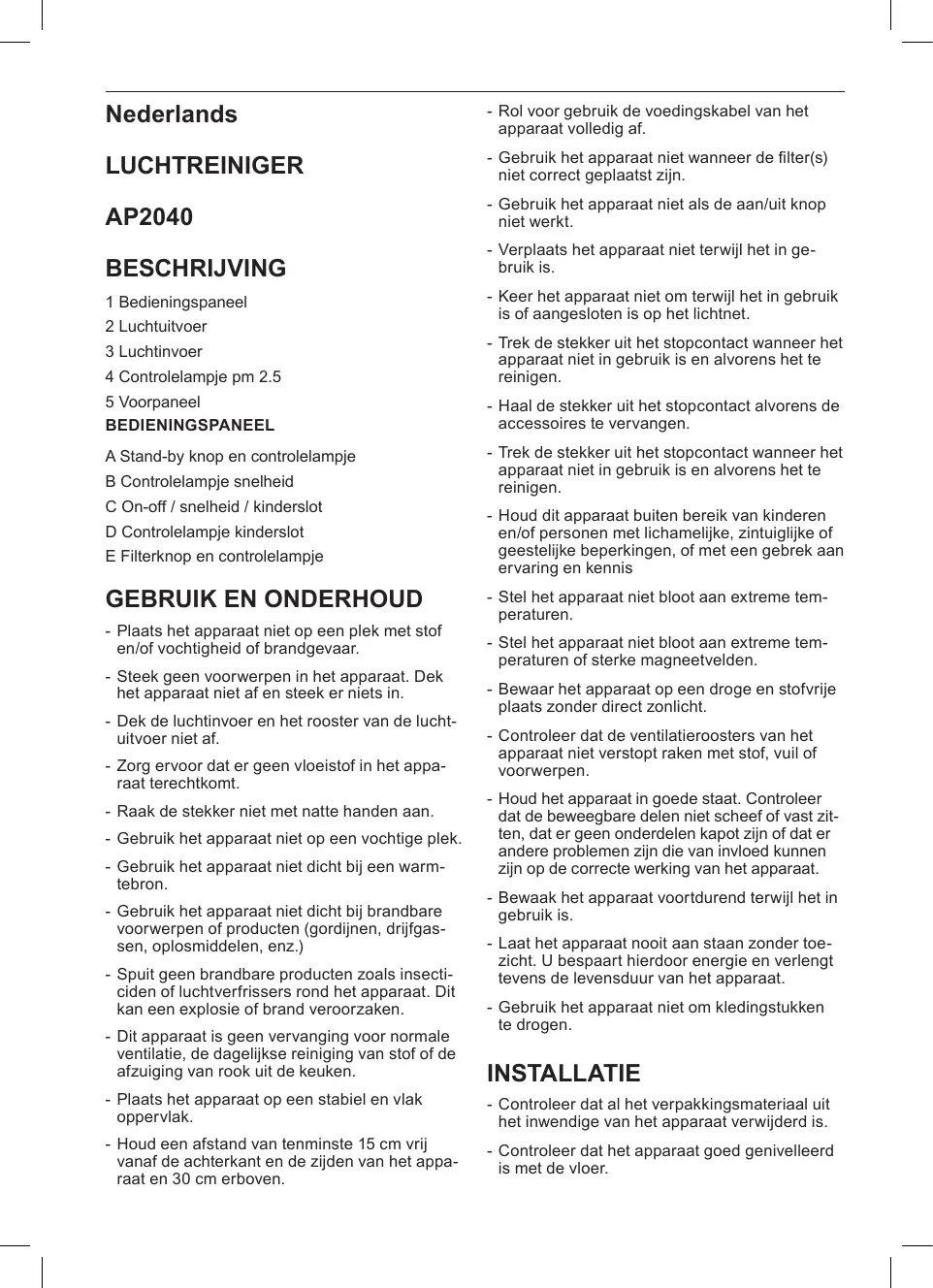 AP2040 - Luchtzuiveraar TAURUS - Gratis gebruiksaanwijzing en handleiding