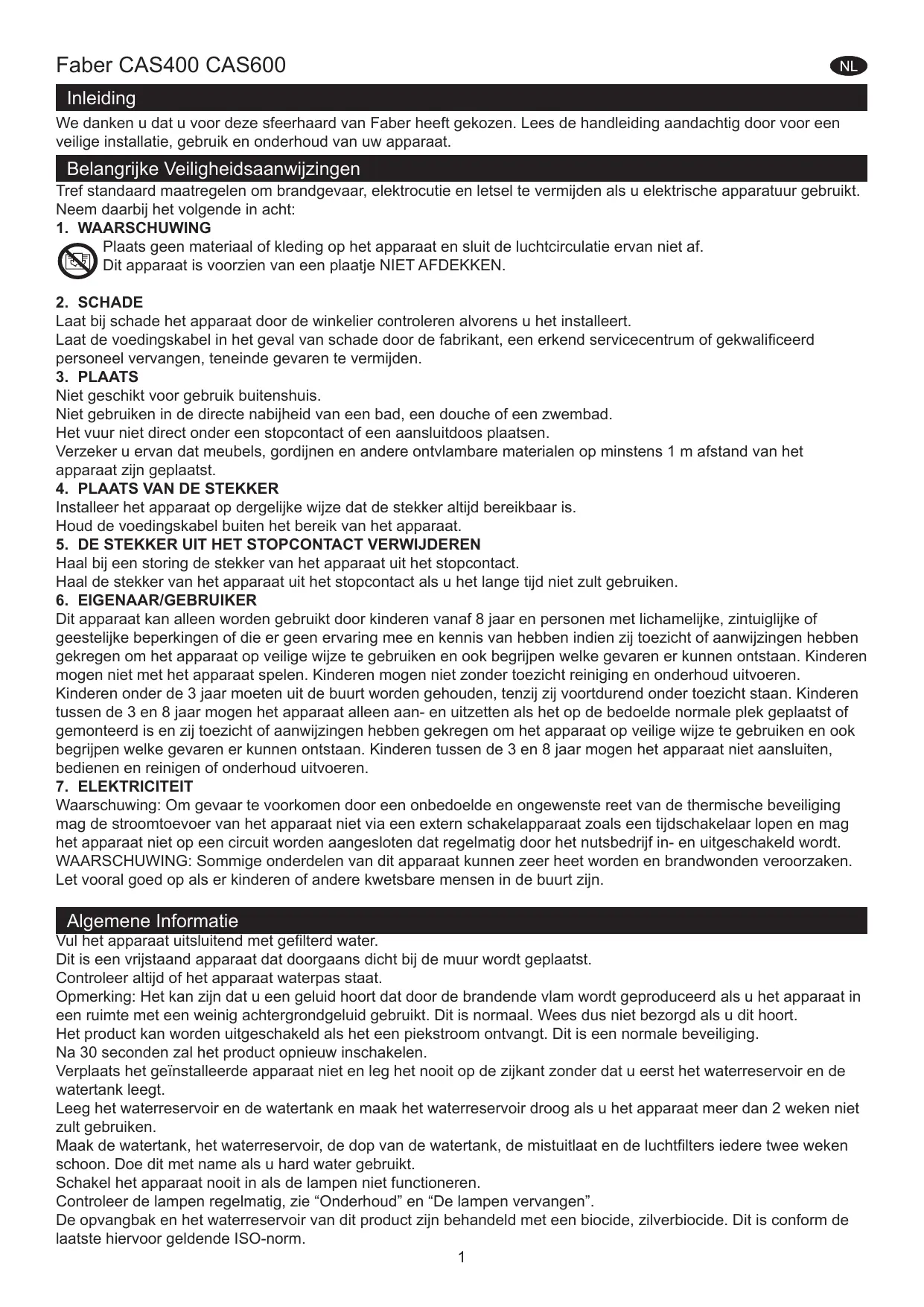 GEBRUIKSAANWIJZING CAS400 - CAS600 FABER