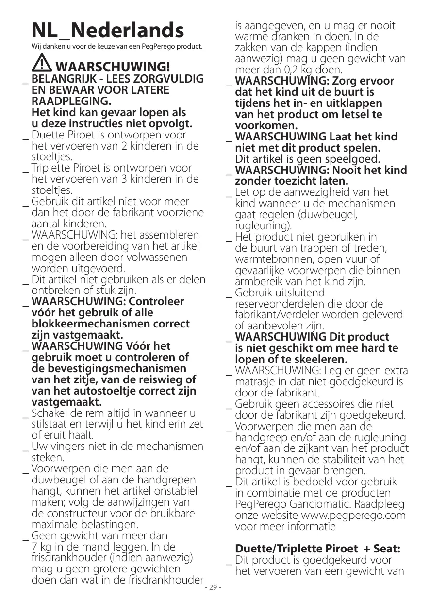 DUETTE PIROET - Poussettes doubles PEG PEREGO - Gratis gebruiksaanwijzing en handleiding