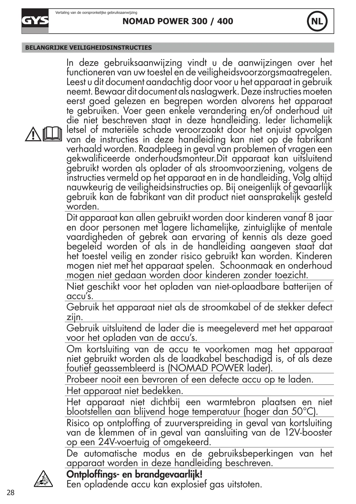 GEBRUIKSAANWIJZING NOMAD POWER 400 - 300 GYS