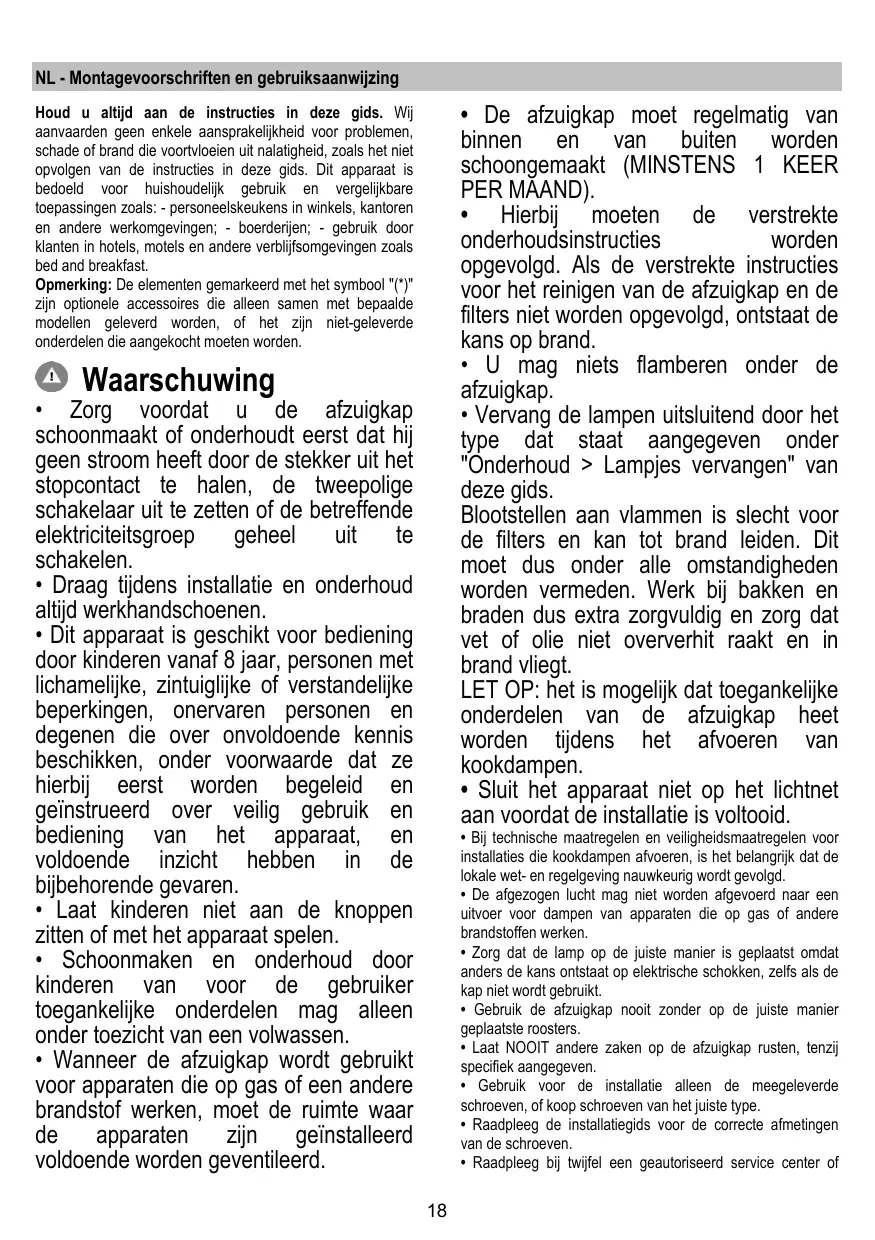 + La hotte ne doit JAMAIS être utilisée comme une surface d'appui, sauf indication expresse.