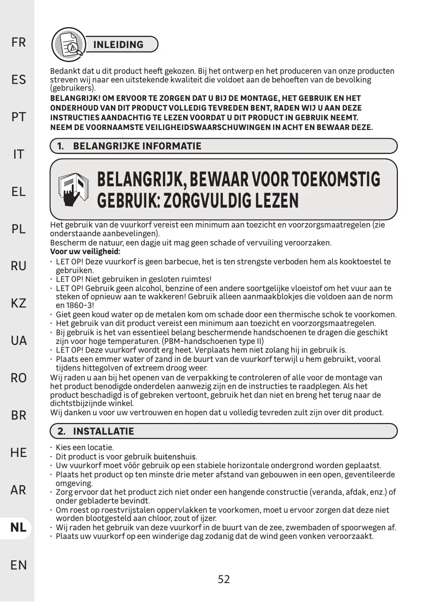 Pour votre sécuri * ATTENTION! Ce brasero n'est pas un barbecue, il est fortement interdit de l'utiliser comme moyen de cuisson.