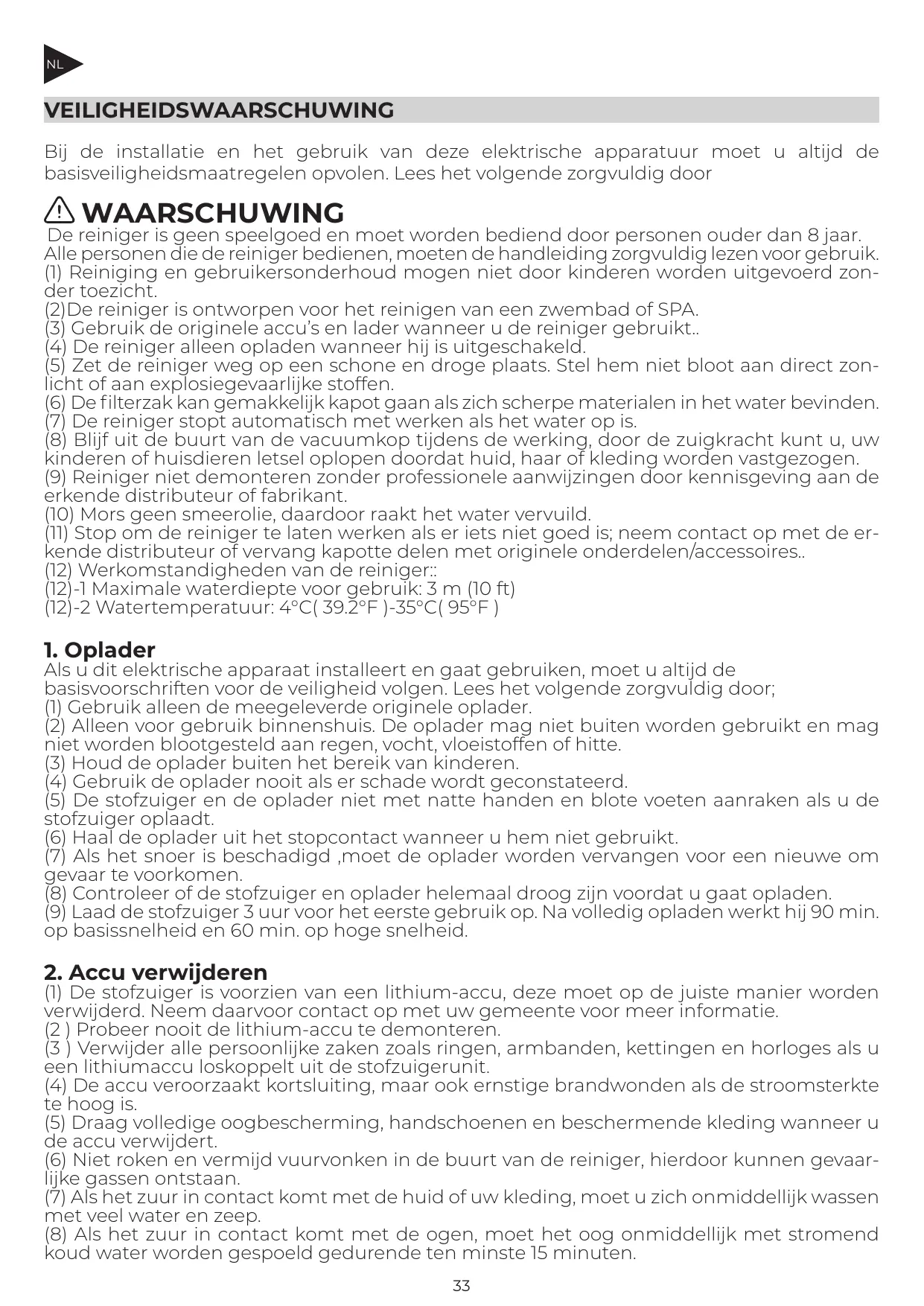 (1) La batterie du nettoyeur est au lithium et doit être retirée correctement :