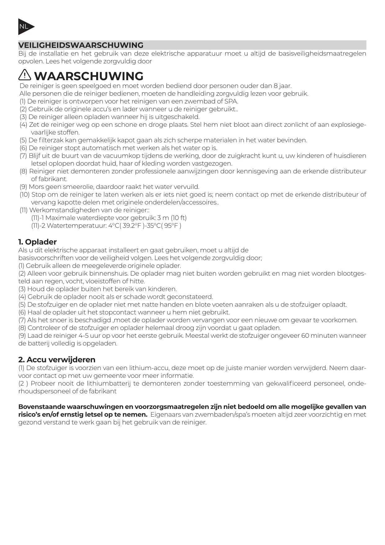 (1) La batterie du nettoyeur est au lithium et doit être retirée correctement :