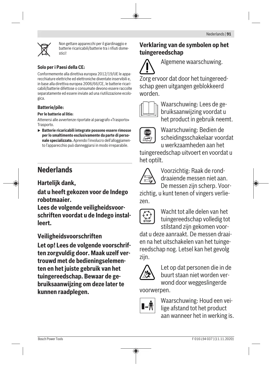 Ne jetez pas les outils de jardin etles accus/ batteries avec les ordures ménagères !