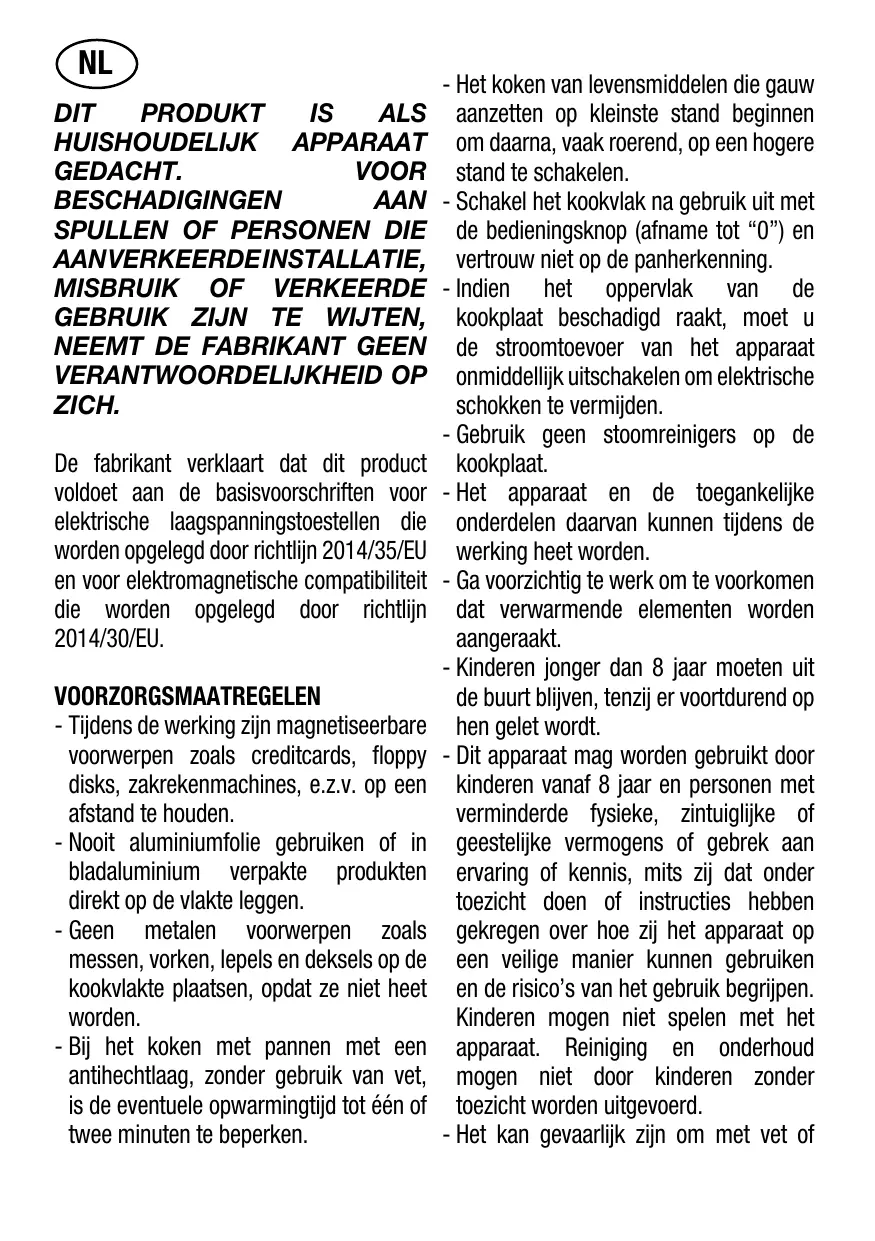 OFF-knop. In geval van nood kunt u de kookplaat te allen tijde uitschakelen met de OFF-knop. Om de Kookpaat daarna opnieu in werking te stellen, moet u eerst de toetsen ontgrendelen