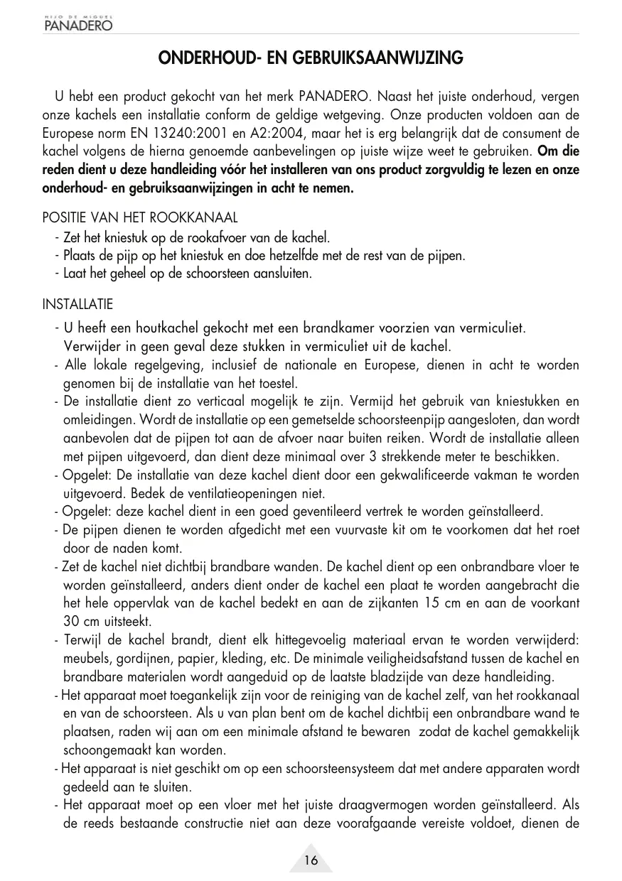 Download de handleiding voor uw Houtkachel in PDF-formaat gratis! Vind uw handleiding KNYSNA / GARDA - PANADERO en neem uw elektronisch apparaat weer in handen. Op deze pagina staan alle documenten die nodig zijn voor het gebruik van uw apparaat. KNYSNA / GARDA van het merk PANADERO.