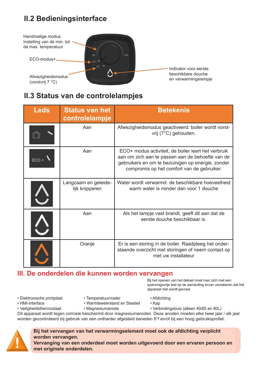 En cas de problème, la goutte d'eau s'affiche en orange (fixe ou clignotant) (voir section « dépannage » de la notice)