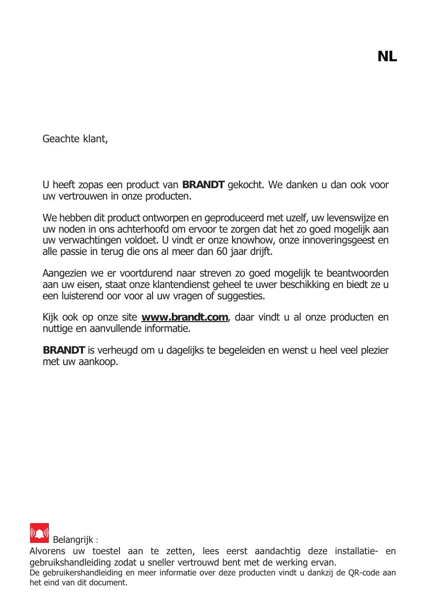 Connectez-vous aussi sur notre site www.brandt.com où vous trouverez nos dernières innovations, ainsi que des informations utiles et complémentaires.