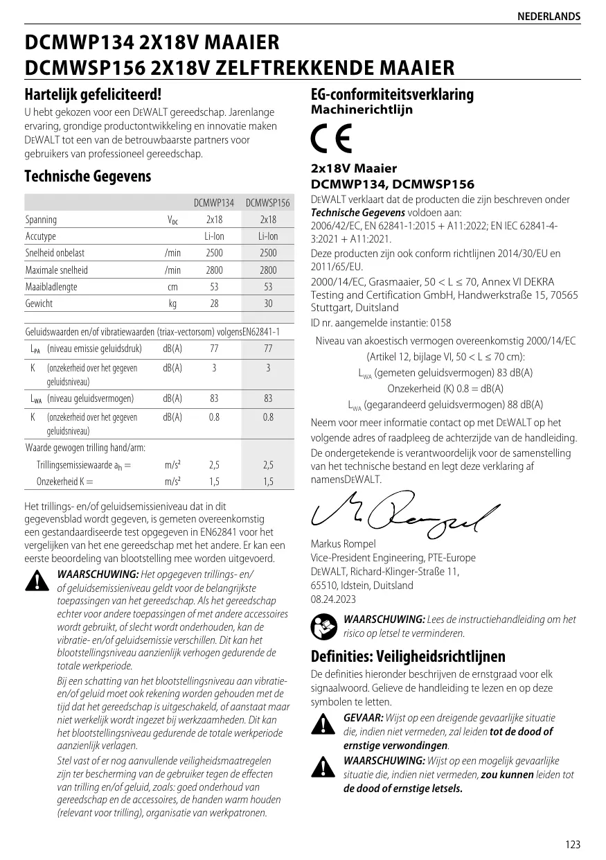 GEBRUIKSAANWIJZING DCMWP134 - DCMWSP156 DEWALT