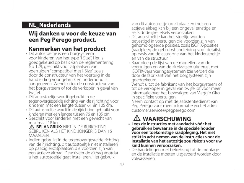 Download de handleiding voor uw Autostoel in PDF-formaat gratis! Vind uw handleiding Viaggio Giro - PEG PEREGO en neem uw elektronisch apparaat weer in handen. Op deze pagina staan alle documenten die nodig zijn voor het gebruik van uw apparaat. Viaggio Giro van het merk PEG PEREGO.