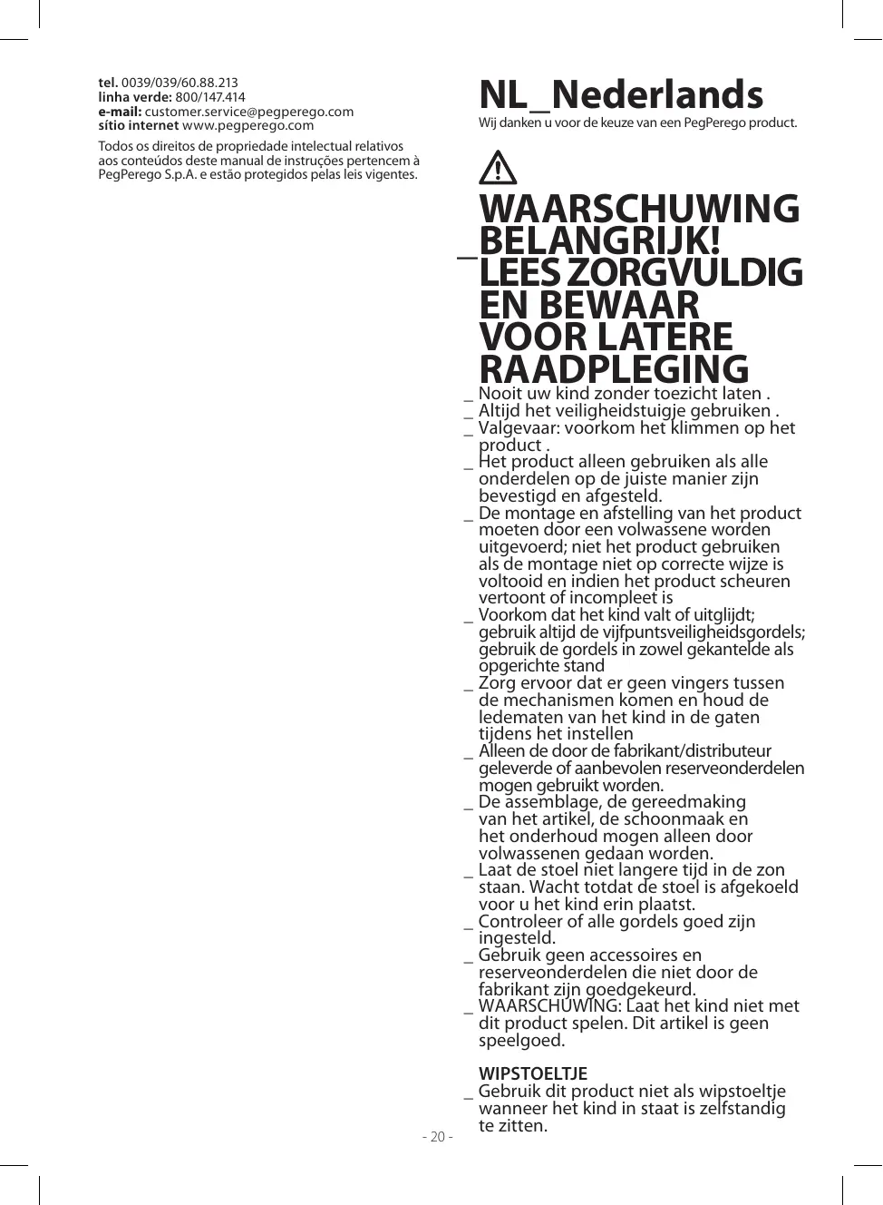 Download de handleiding voor uw Kinderstoel in PDF-formaat gratis! Vind uw handleiding Prima Pappa follow me - PEG PEREGO en neem uw elektronisch apparaat weer in handen. Op deze pagina staan alle documenten die nodig zijn voor het gebruik van uw apparaat. Prima Pappa follow me van het merk PEG PEREGO.