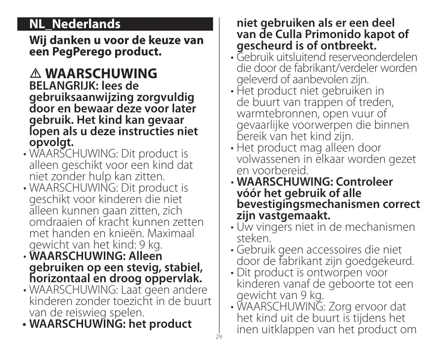 culla primonido - Kinderwagens en accessoires PEG PEREGO - Gratis gebruiksaanwijzing en handleiding