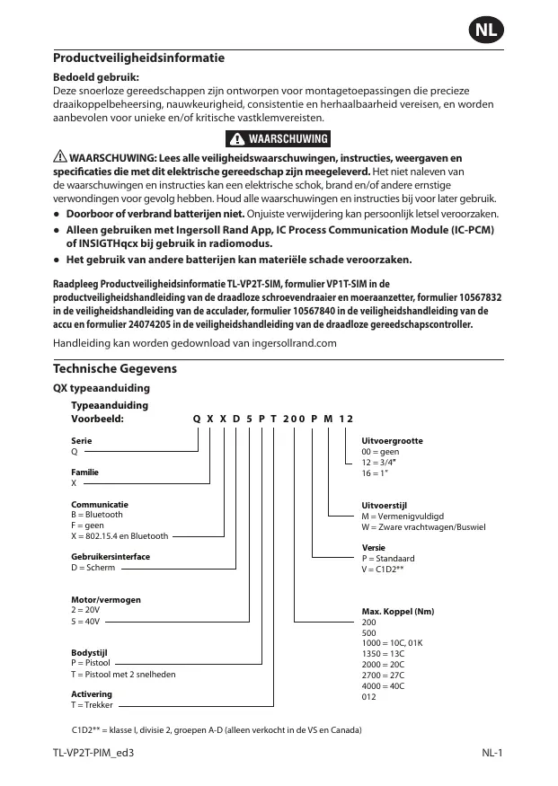 GEBRUIKSAANWIJZING TL-VP2T-PIM Ingersoll Rand