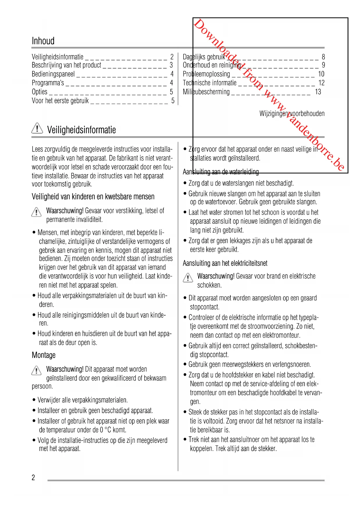 • Vaatwasmiddel is gevaarlijk. Volg de veiligheidsin-
