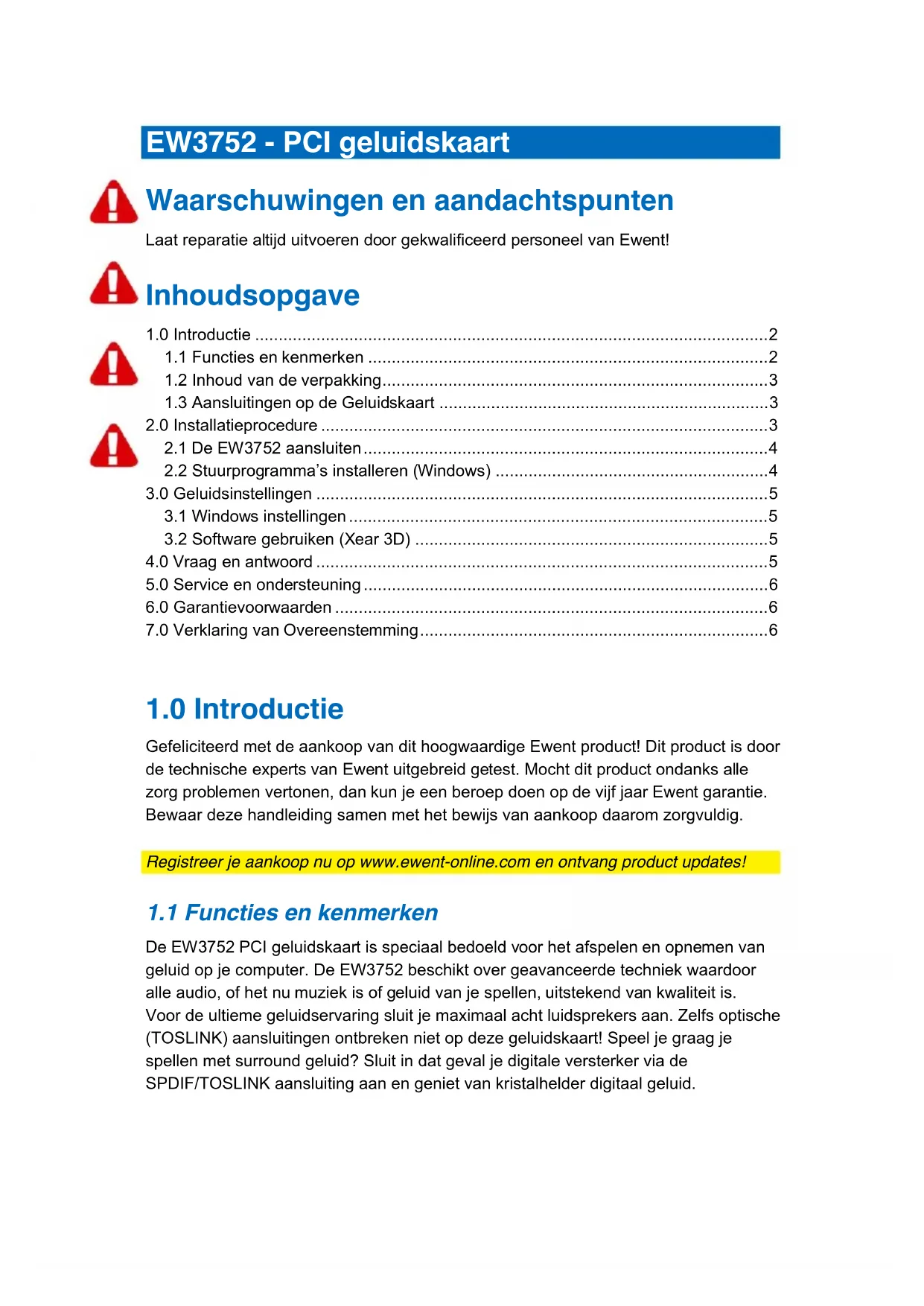 Download de handleiding voor uw Geluidskaart in PDF-formaat gratis! Vind uw handleiding EW3752 - Ewent en neem uw elektronisch apparaat weer in handen. Op deze pagina staan alle documenten die nodig zijn voor het gebruik van uw apparaat. EW3752 van het merk Ewent.