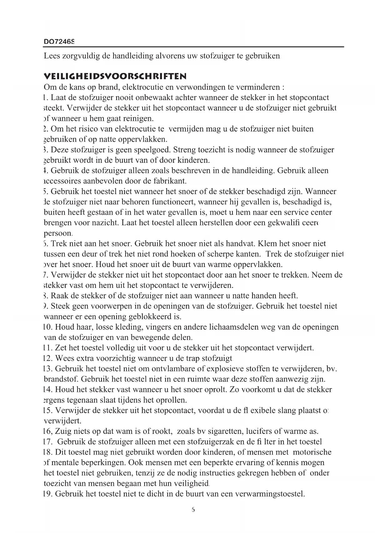 5DO7246S Lees zorgvuldig de handleiding alvorens uw stofzuiger te gebruiken.