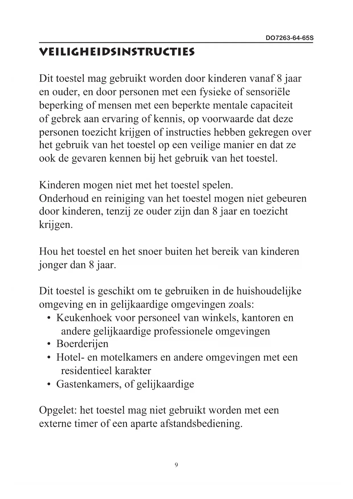 VEILIGHEIDSINSTRUCTIES Dit toestel mag gebruikt worden door kinderen vanaf 8 jaar