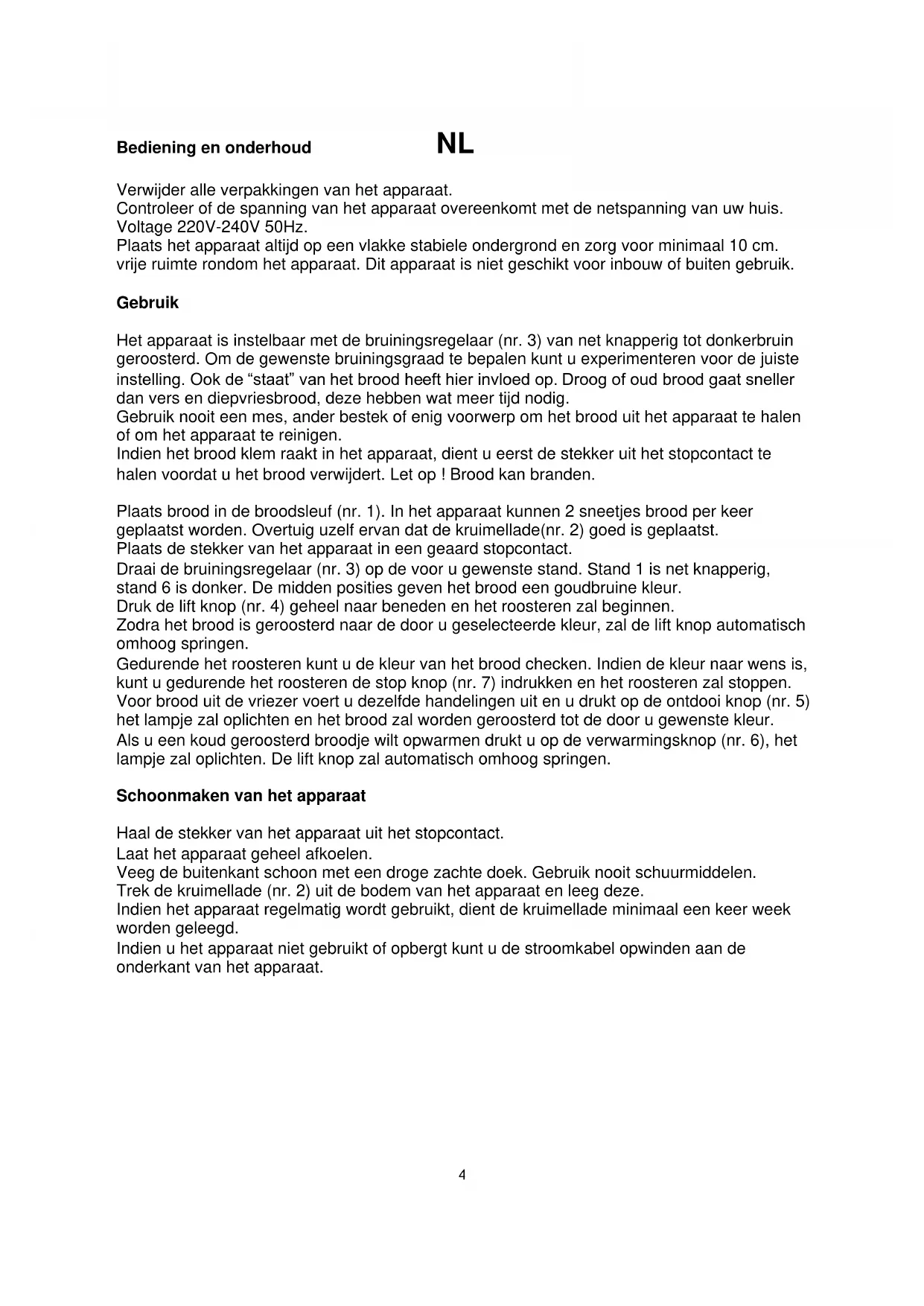 kunt u gedurende het roosteren de stop knop (nr. 7) indrukken en het roosteren zal stoppen.