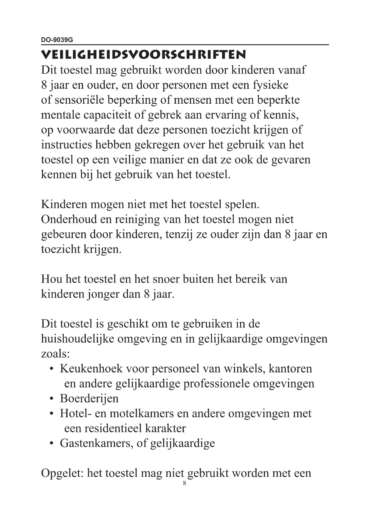 VEILIGHEIDSVOORSCHRIFTEN Dit toestel mag gebruikt worden door kinderen vanaf