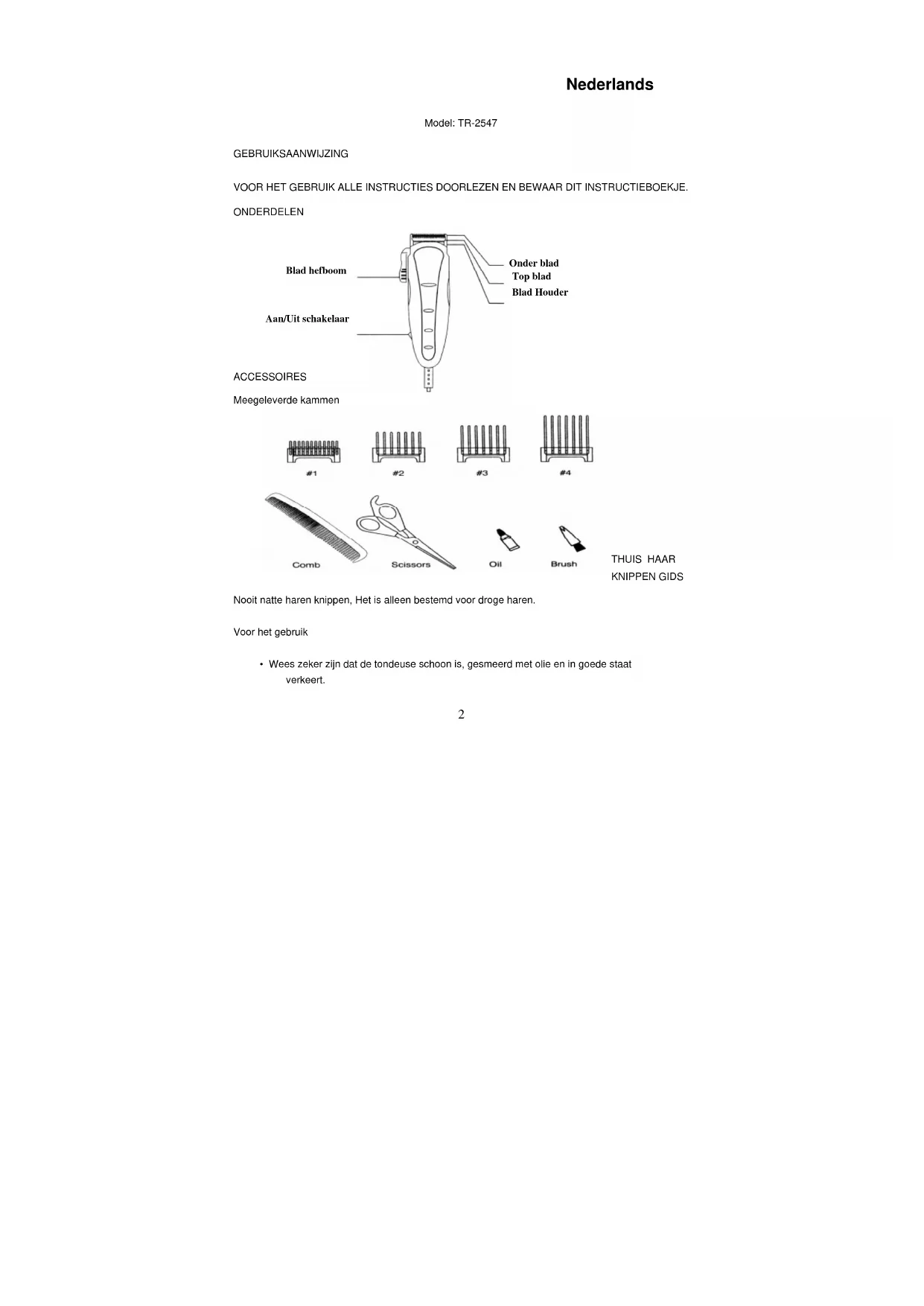 THUIS HAAR KNIPPEN GIDS Nooit natte haren knippen, Het is alleen bestemd voor droge haren. Voor het gebruik