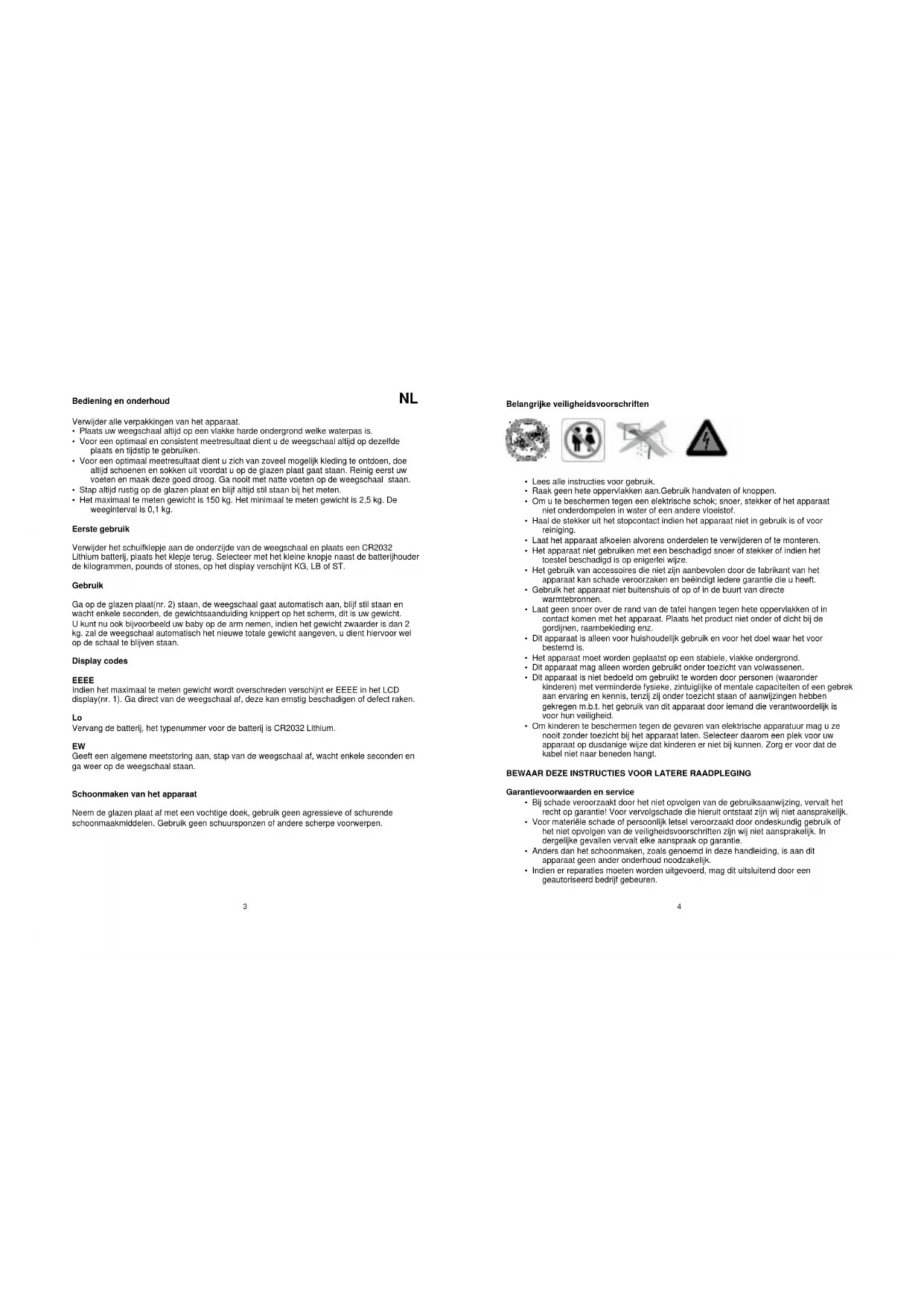 BEWAAR DEZE INSTRUCTIES VOOR LATERE RAADPLEGING Garantievoorwaarden en service