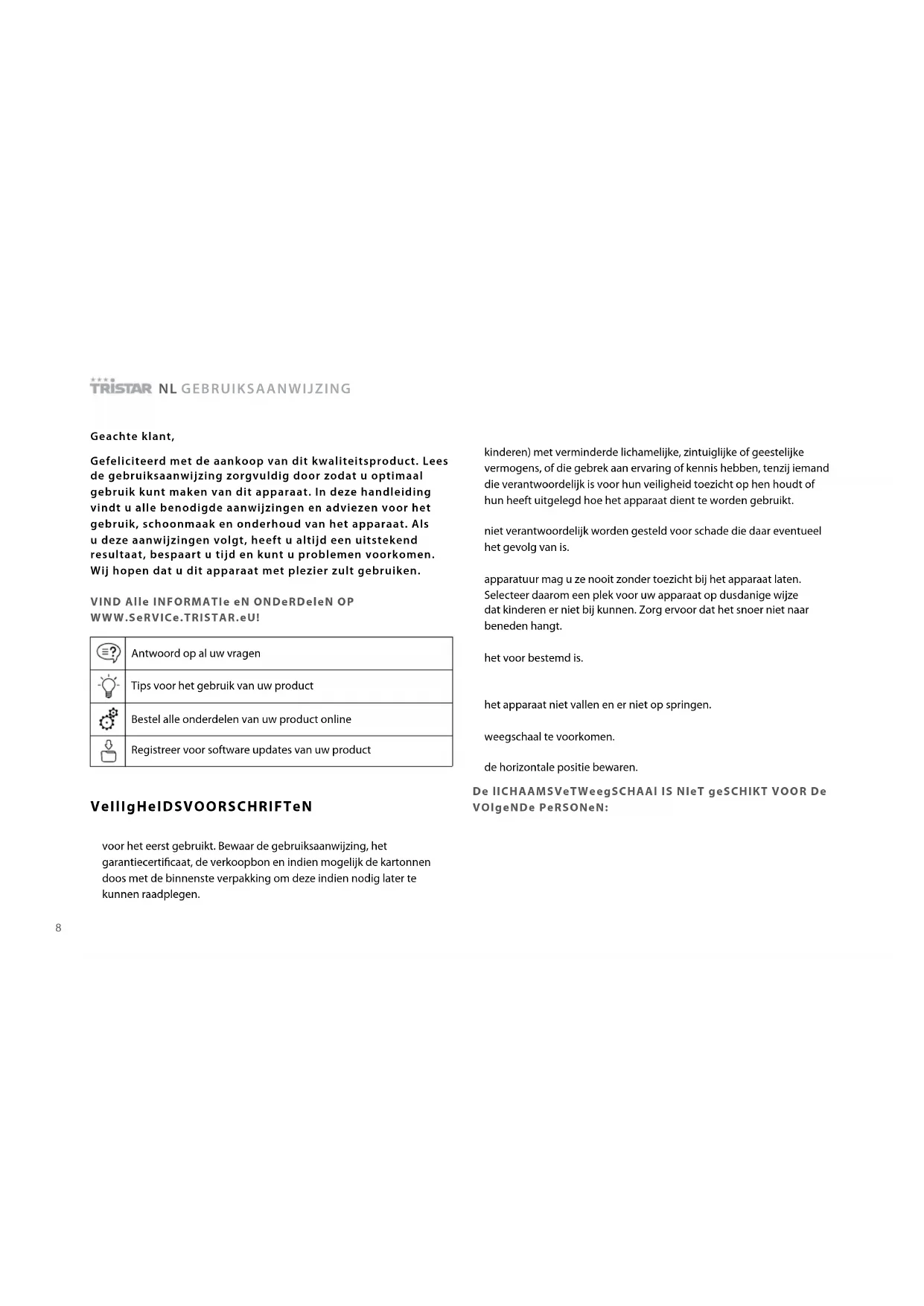 veiligheidsvoorschriften is Tristar niet aansprakelijk. In dergelijke
