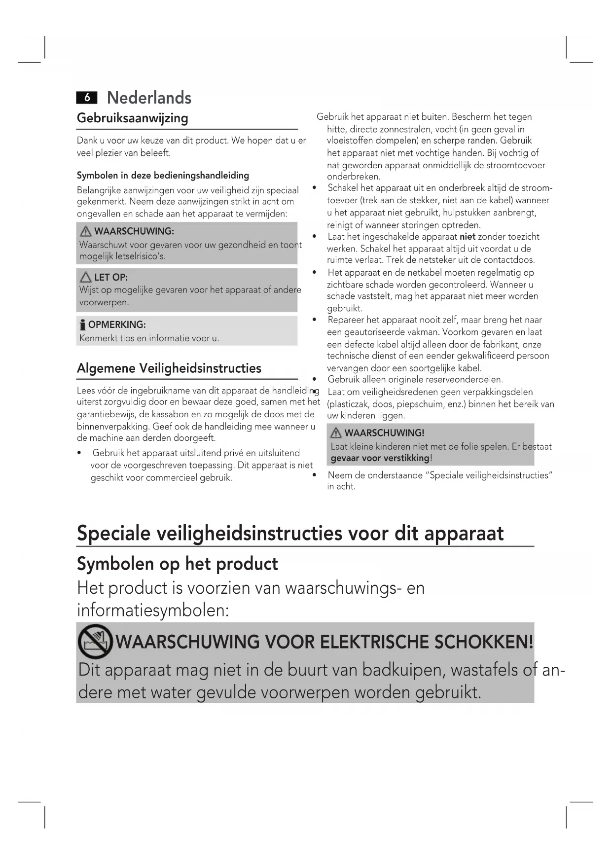 Belangrijke aanwijzingen voor uw verilgheid zijn special gekenmerkt. Neem deze aanwijzingen strikt in acht om ongevallen en schade aan het apparatus te vermijden: