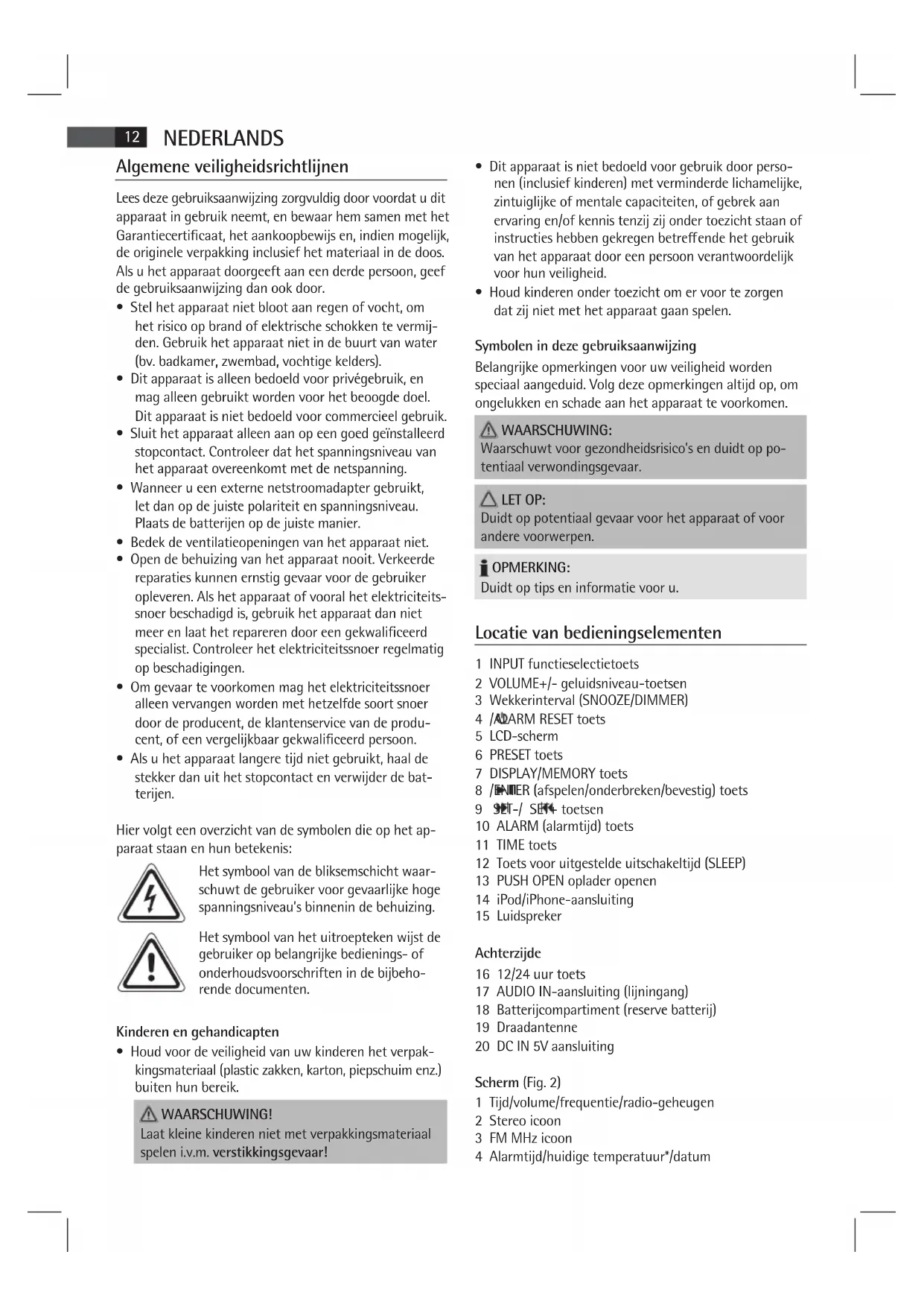 • Dit apparaat is niet bedoeld voor gebruik door perso-
