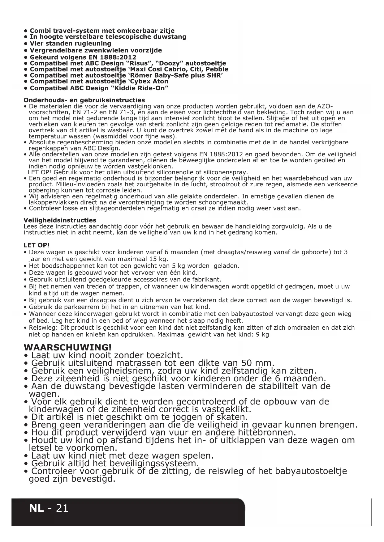 Waarschuwing: Controleer voor gebruik van de kinderwagen of alleNL - 24