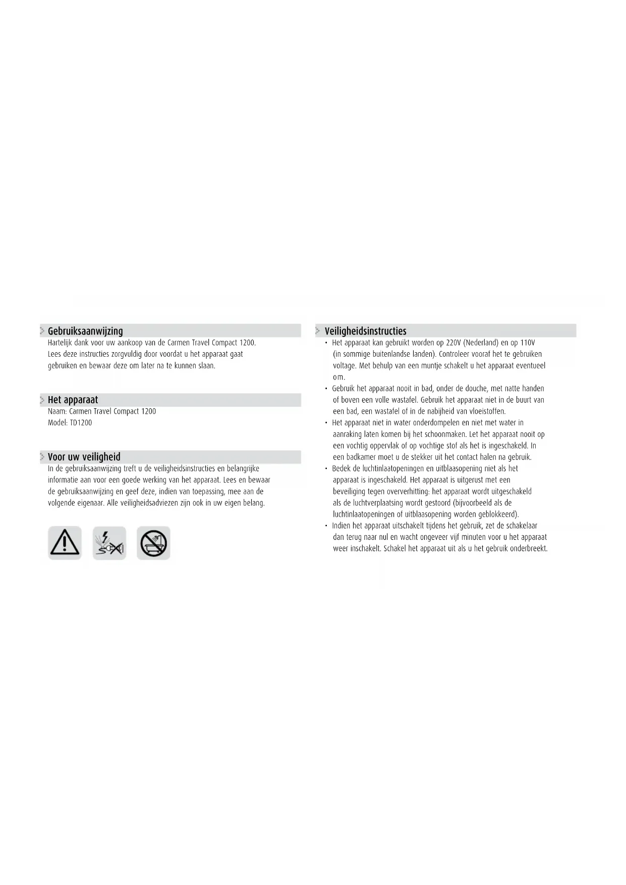 GEBRUIKSAANWIJZING TD 1200 Carmen