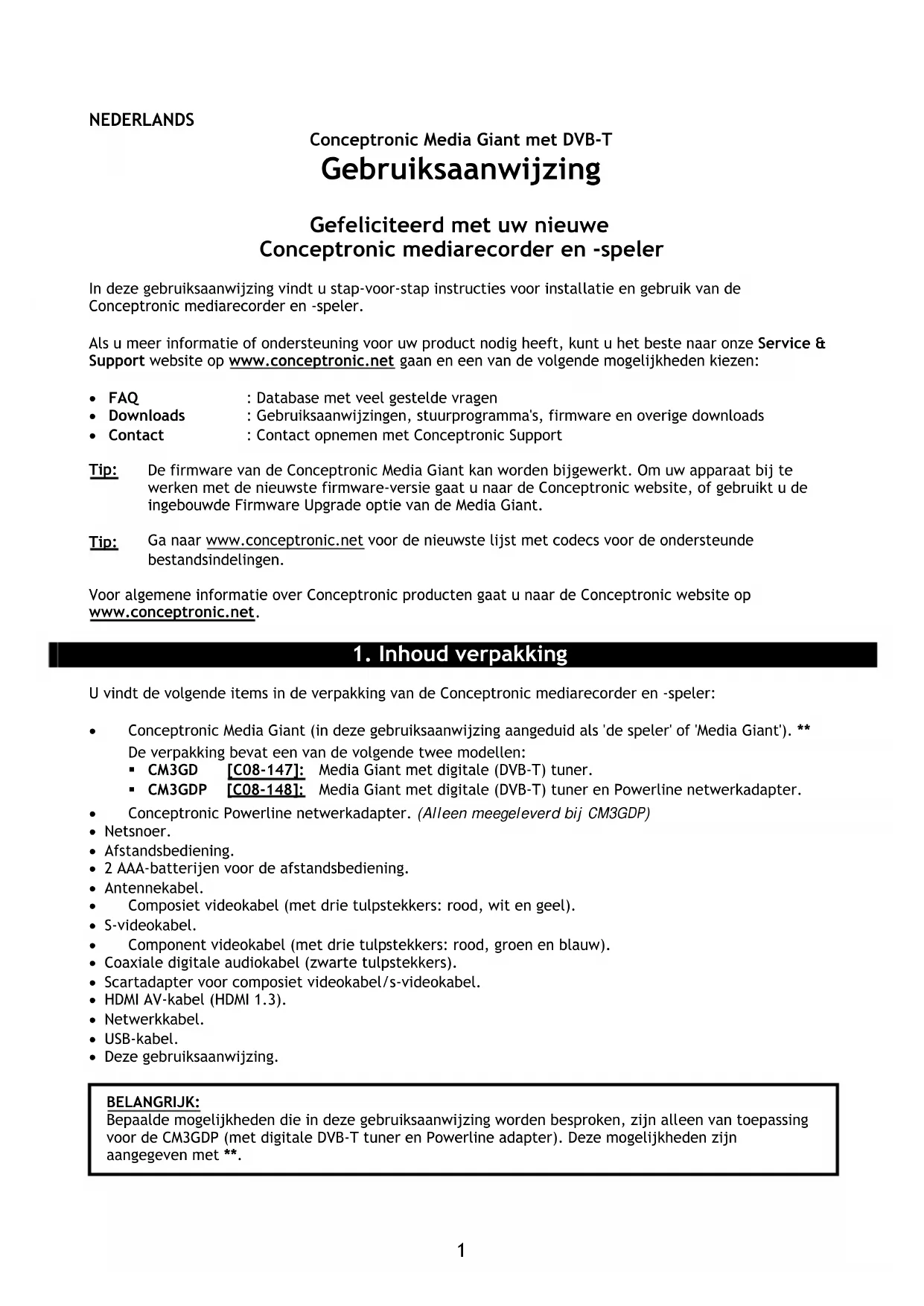 voor de CM3GDP (met digitale DVB-T tuner en Powerline adapter). Deze mogelijkheden zijn