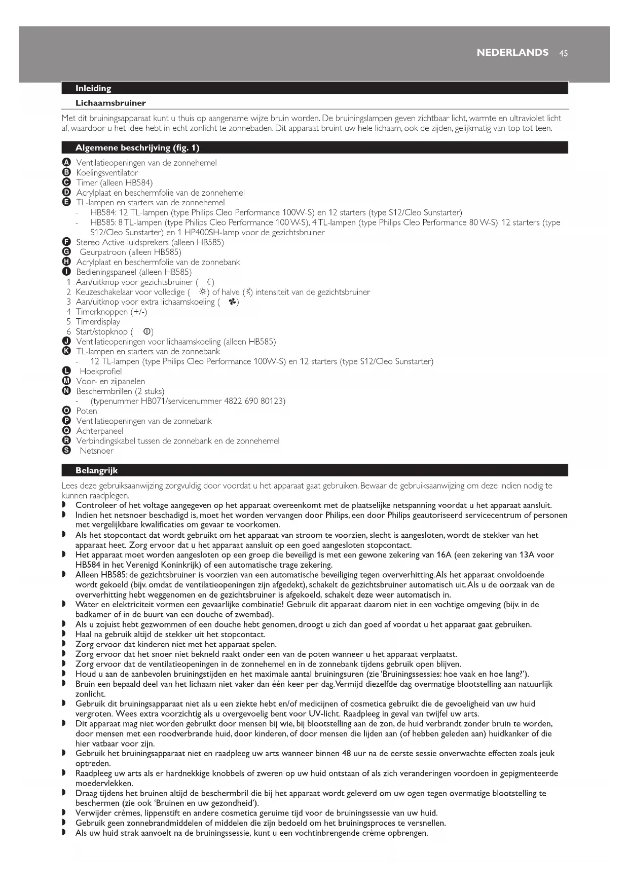 GEBRUIKSAANWIJZING HB585 PHILIPS