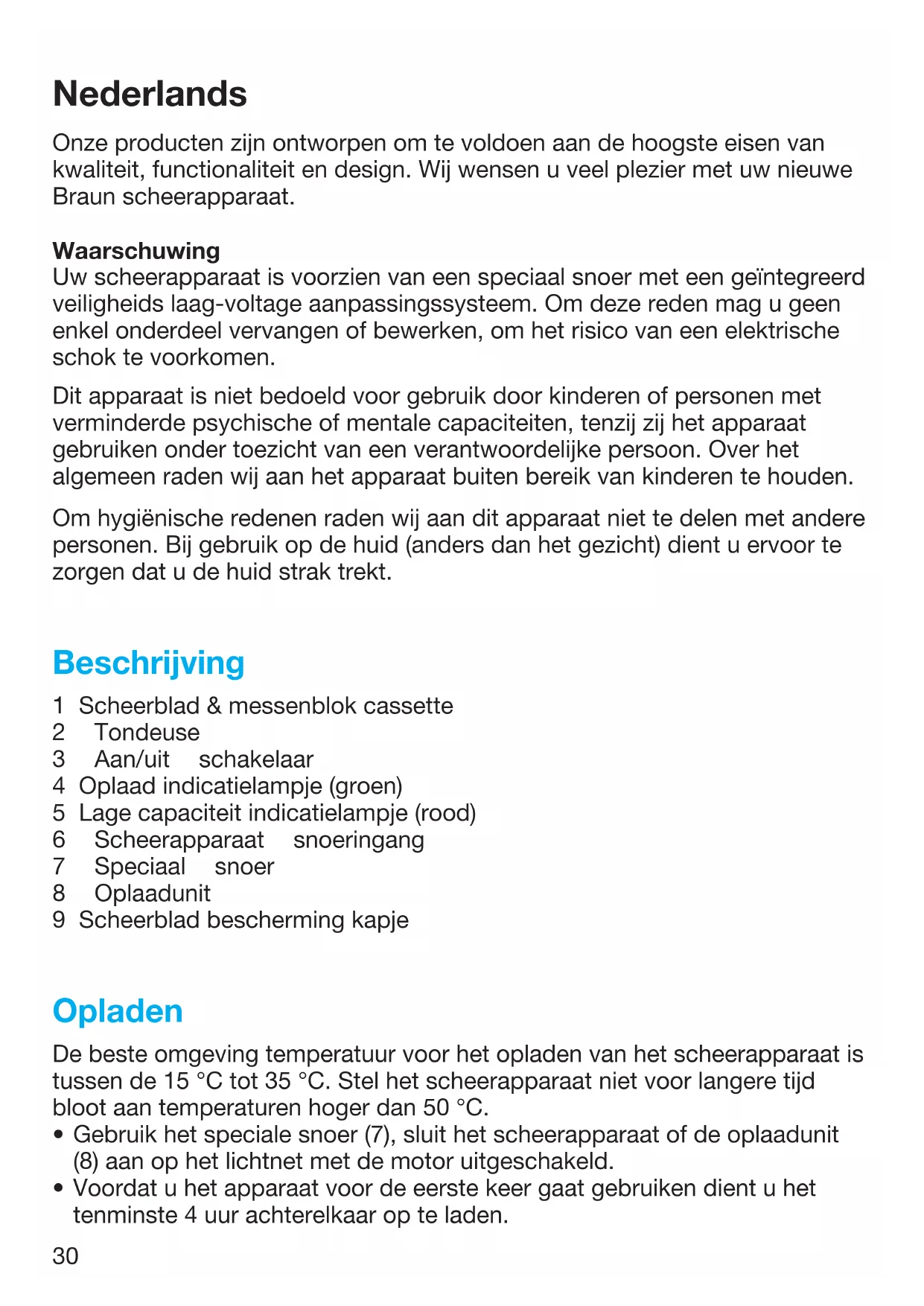 Om maximale capaciteit van de accu te houden moet het scheerapparaat