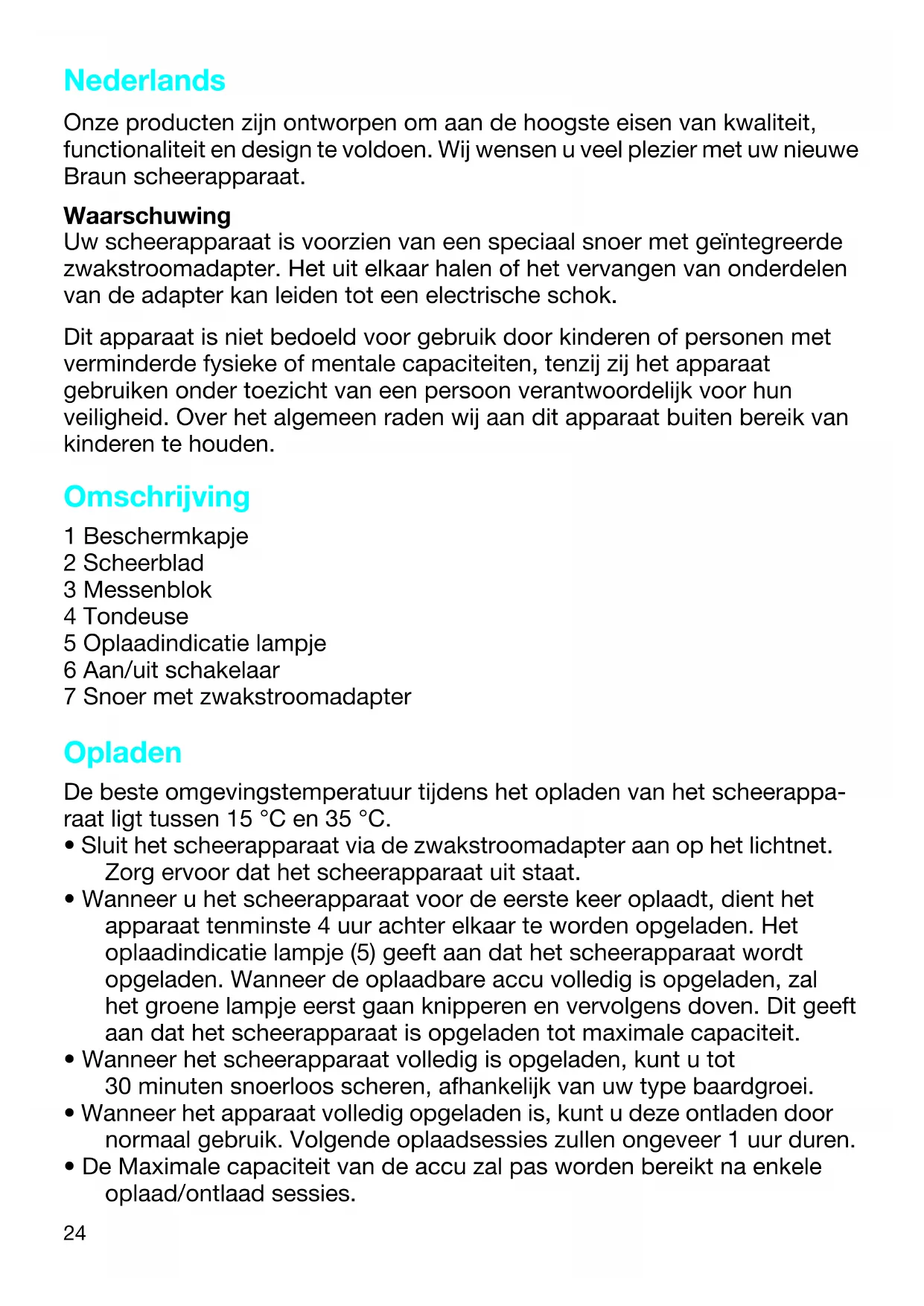 ontladen. Laadt vervolgens het scheerapparaat weer op tot volle capaciteit.