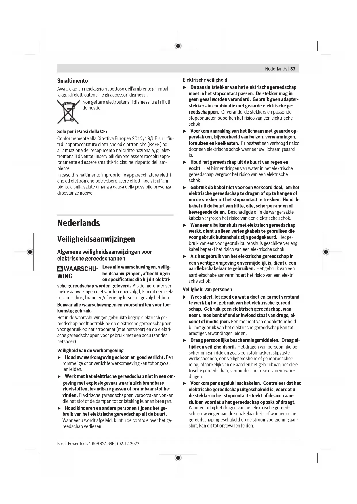 max . Als Z max onbekend is, bepaal dan Z max in overleg met de netwerkbeheerder of de energieleverancier. Informatie over geluid en trillingen Geluidsemissiewaarden bepaald conform EN62841-2-1. Het A-gewogen geluidsniveau van het elektrische gereed- schap bedraagt typisch: geluidsdrukniveau 100dB(A); ge- luidsvermogenniveau 111dB(A). Onzekerheid K=5dB. Bosch Power Tools 1 609 92A 89H | (02.12.2022)40 | Nederlands Draag gehoorbescherming! Totale trillingswaarden a